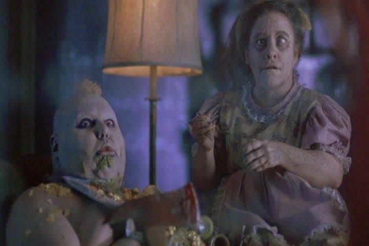 These two ghosts were mother and child when they were alive. “The Great Child” was played by Ernest Harth while “The Dire Mother” was portrayed by Laurie Soper. When alive they were called Harold and Margaret Shelbourne. Margaret worked in a circus and when her son was sexually assaulted by a member of a carnival troupe, it set off a chain of fatal reactions. Margaret was murdered for daring to confront him, causing Harold to kill many members of the troupe in a murderous frenzy. He was later restrained and killed. As his name suggests, he appears as an obese man-child, wearing a soiled bib.